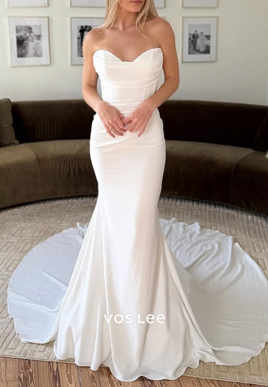 Simple & Classic Strapless Mermaid Wedding Dresses with Sweep Train