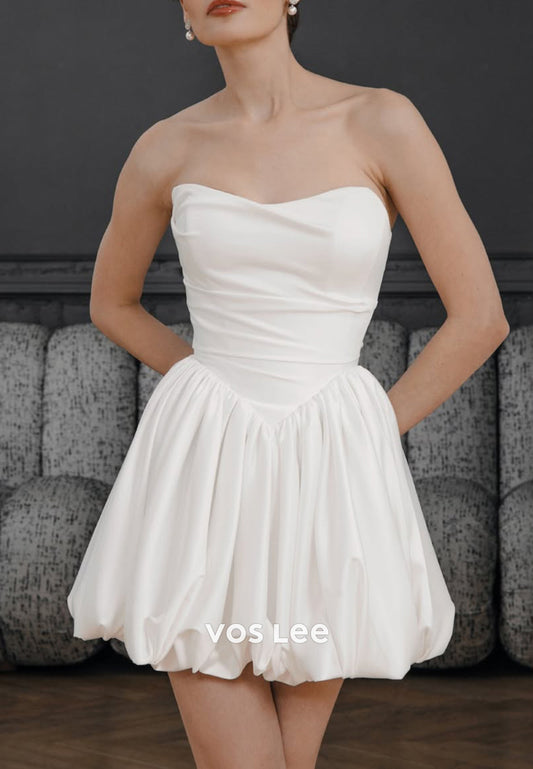 Mini A-Line Off the Shoulder Ruched Satin Simple Wedding Dresses