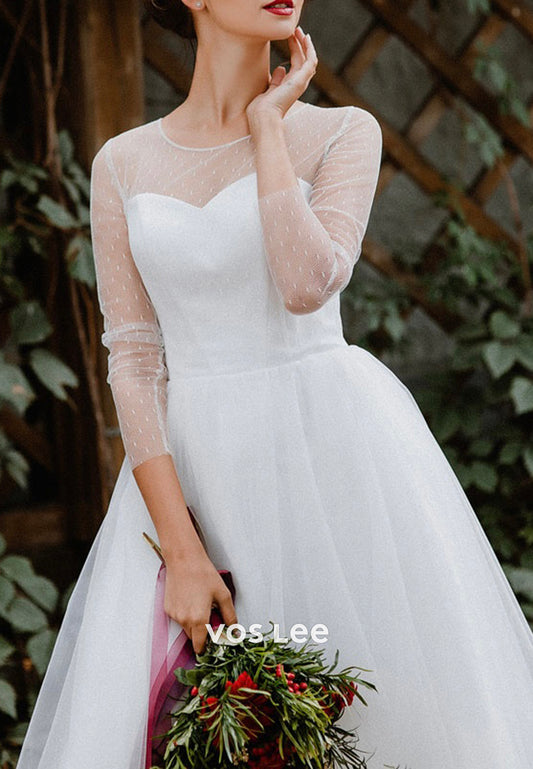 Classic A-Line Long Sleeve Illusion Neck Wedding Dresses