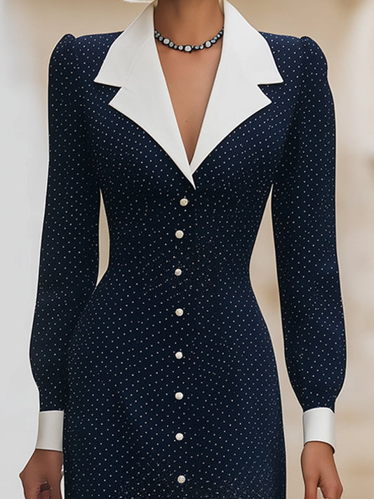 Elegant Polka Dot Midi Dress With Contrast Collar