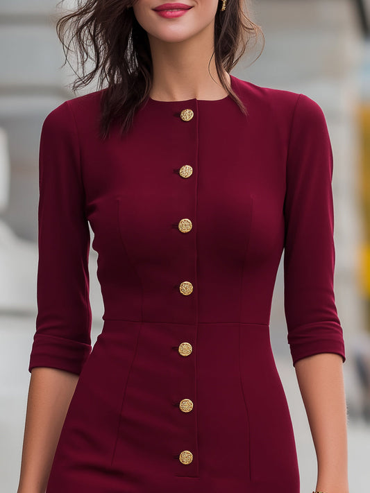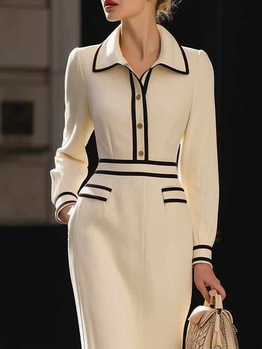 Vintage-Inspired Long Sleeve Structured Midi Dress