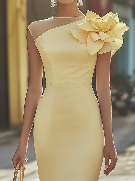 Elegant Sheer Patchwork 3D Flower Sleeveless Dress