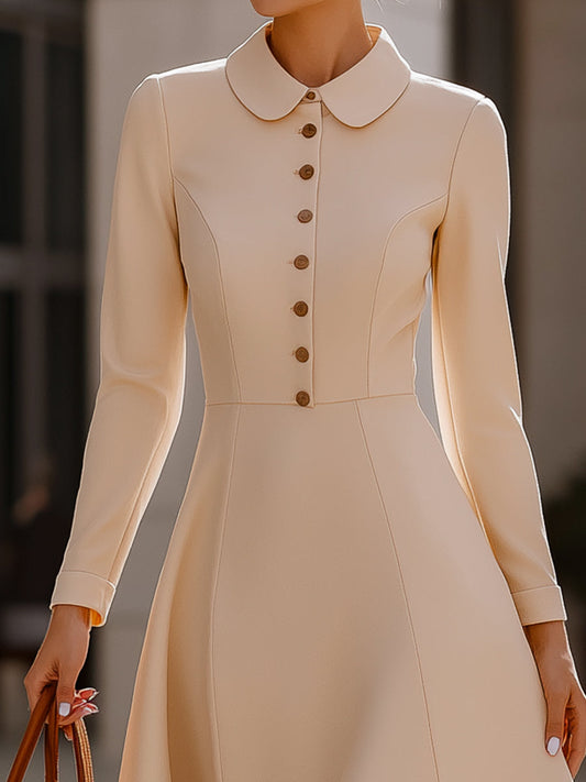 Ivory Puff Sleeve Buttoned Peter Pan Collar Midi Dress
