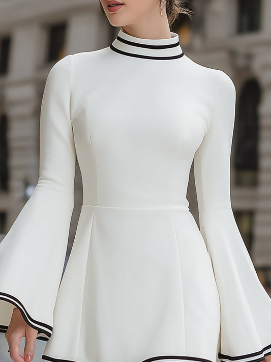 Classic Two-Tone Draped Turtleneck Midi Dress