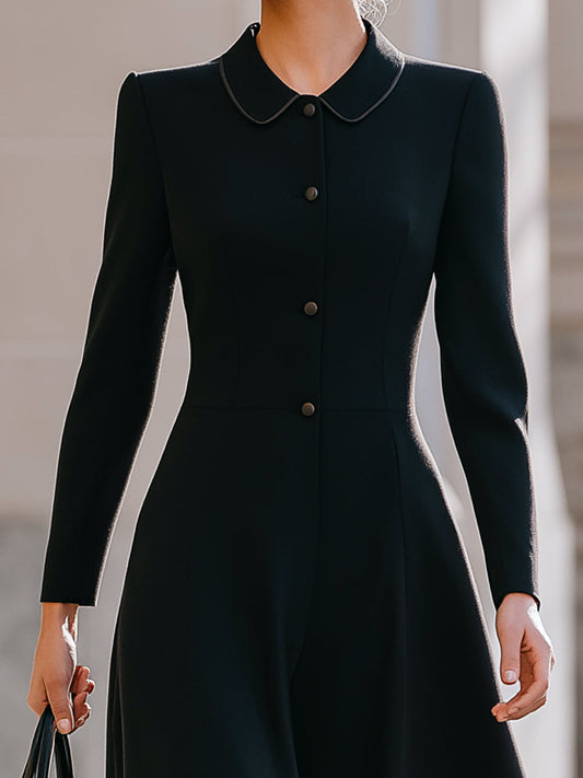 Black Vintage-Inspired Peter Pan Collar Midi Dress