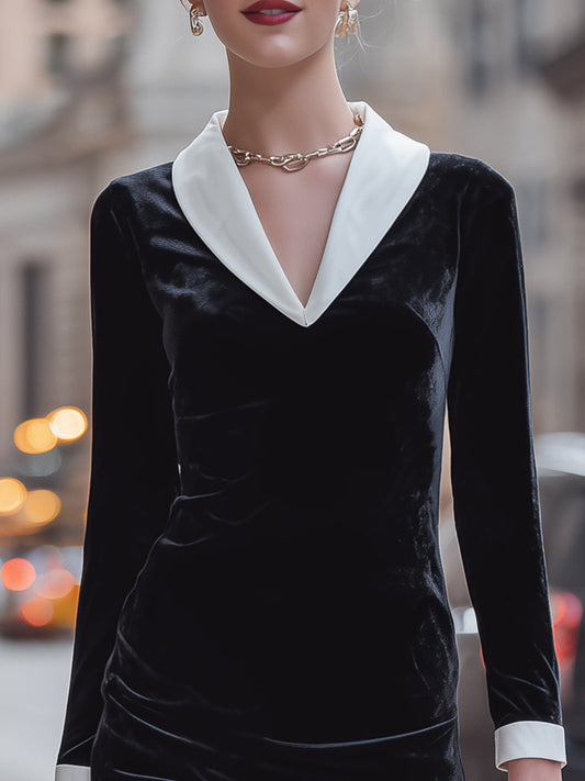 Velvet Contrast Collar Long Sleeve Mini Dress