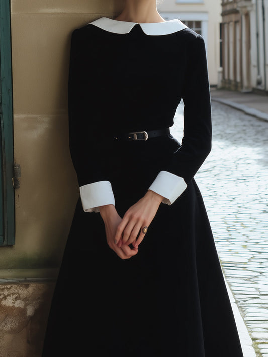 Long Sleeve Mini Dress With Contrast Oversized Collar