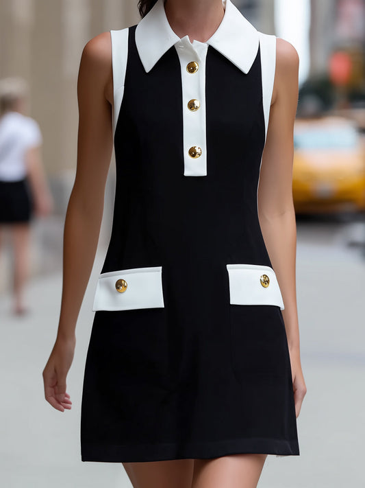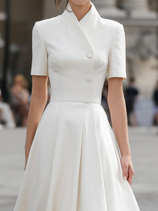Elegant Beige Button-Detail Short Dress With Structured Collar