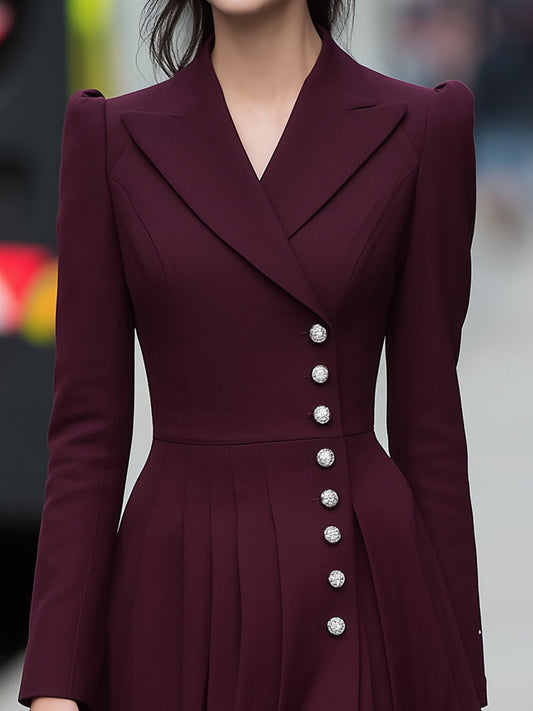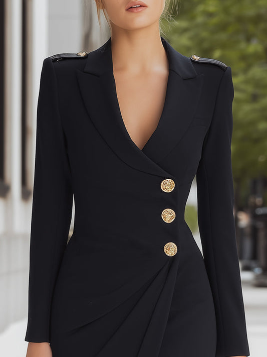 Elegant Blazer-Inspired Wrap Dress With Gold Buttons