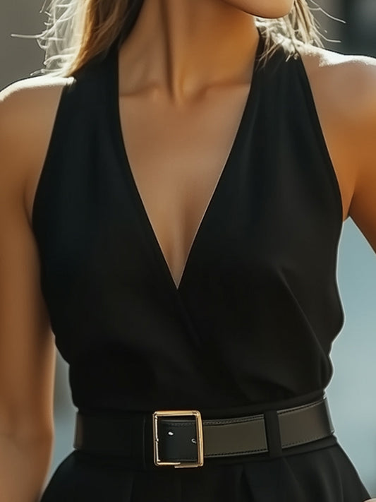 Chic Sleeveless Belted Jumpsuit With Cutout Neckline