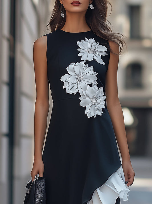 Elegant Contrast Panel Bodycon Dress With Side Slit
