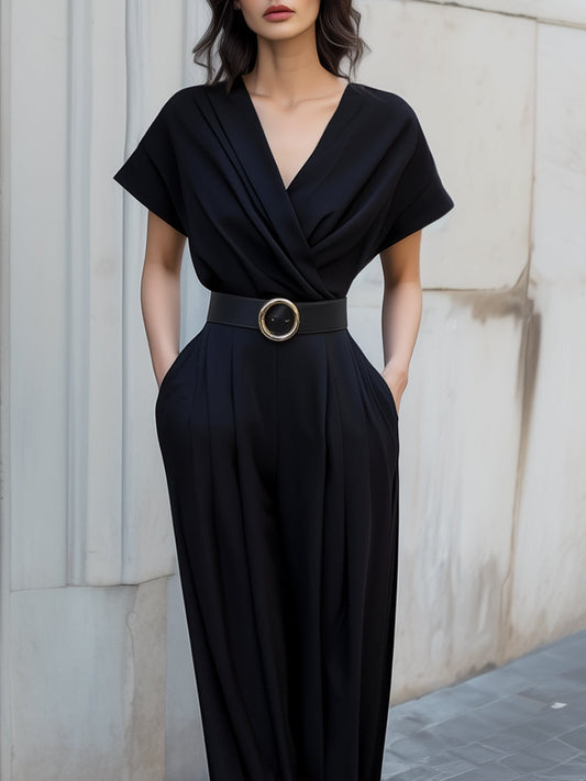 Sleek V-Neck Belted Wide-Leg Jumpsuit