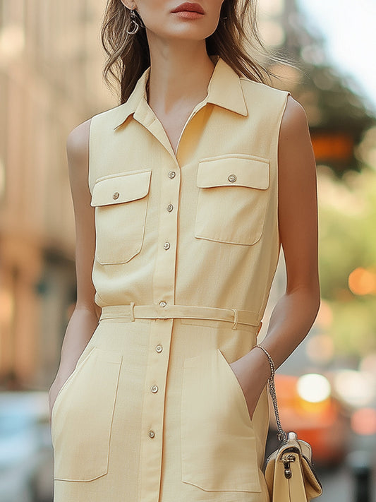 Sleeveless Beige Pleated Shirt Dress Wedding Guest Dresses