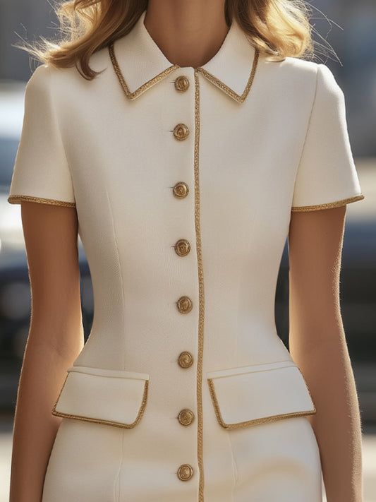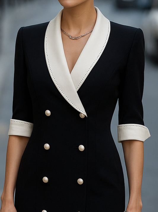 Stylish Double-Breasted Blazer Dress With Contrast Trim Wedding Guest Dresses