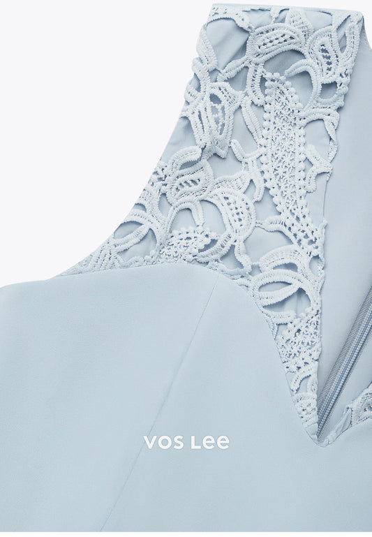 Sky Blue Illusion Cutout Bateau Neck Floor-Length Wedding Guest Dresses