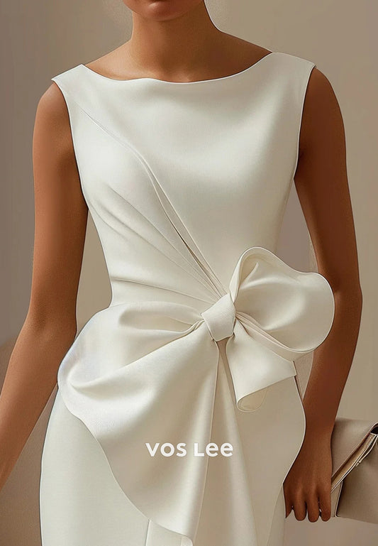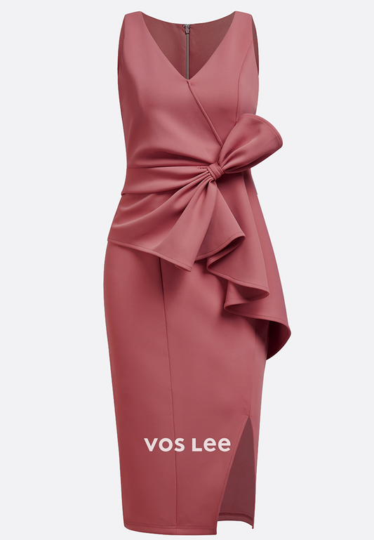 Classic & Timeless Pleated Bowknot Sheath Knee-Length Wedding Guest Dresses with Split