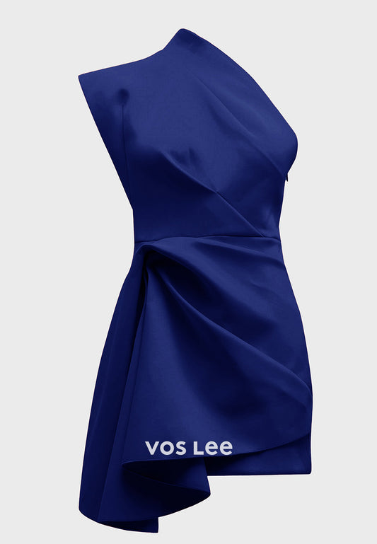Mini & Short Empire Waist One Shoulder Sleeveless Pleated Sheath Wedding Guest Dresses