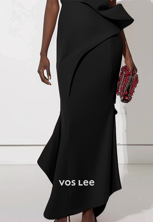 Couture & Ornate One Shoulder Pleated Ankle-Length Mermaid Evening Dresses
