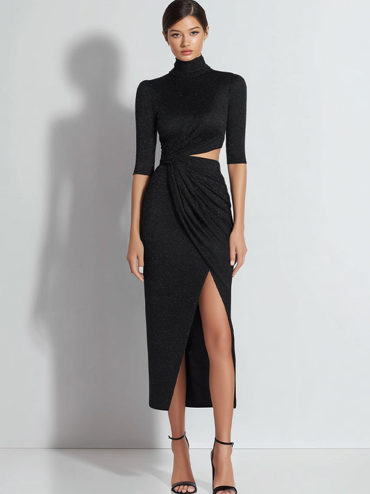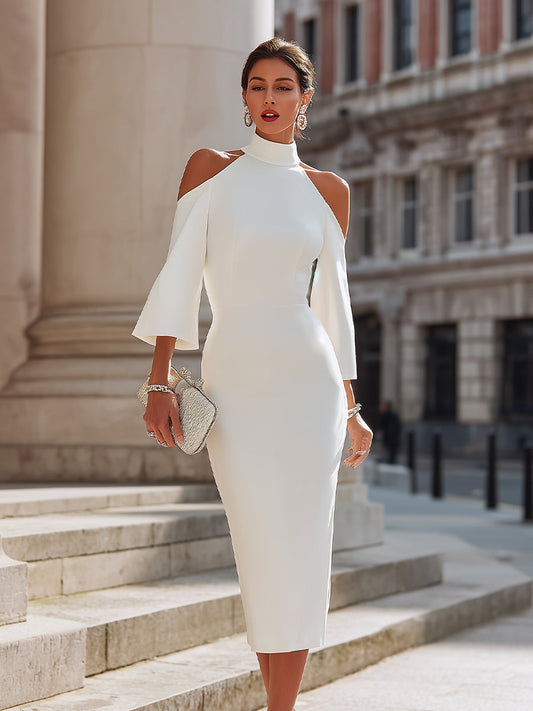 Cold-Shoulder High-Neck Midi Dress