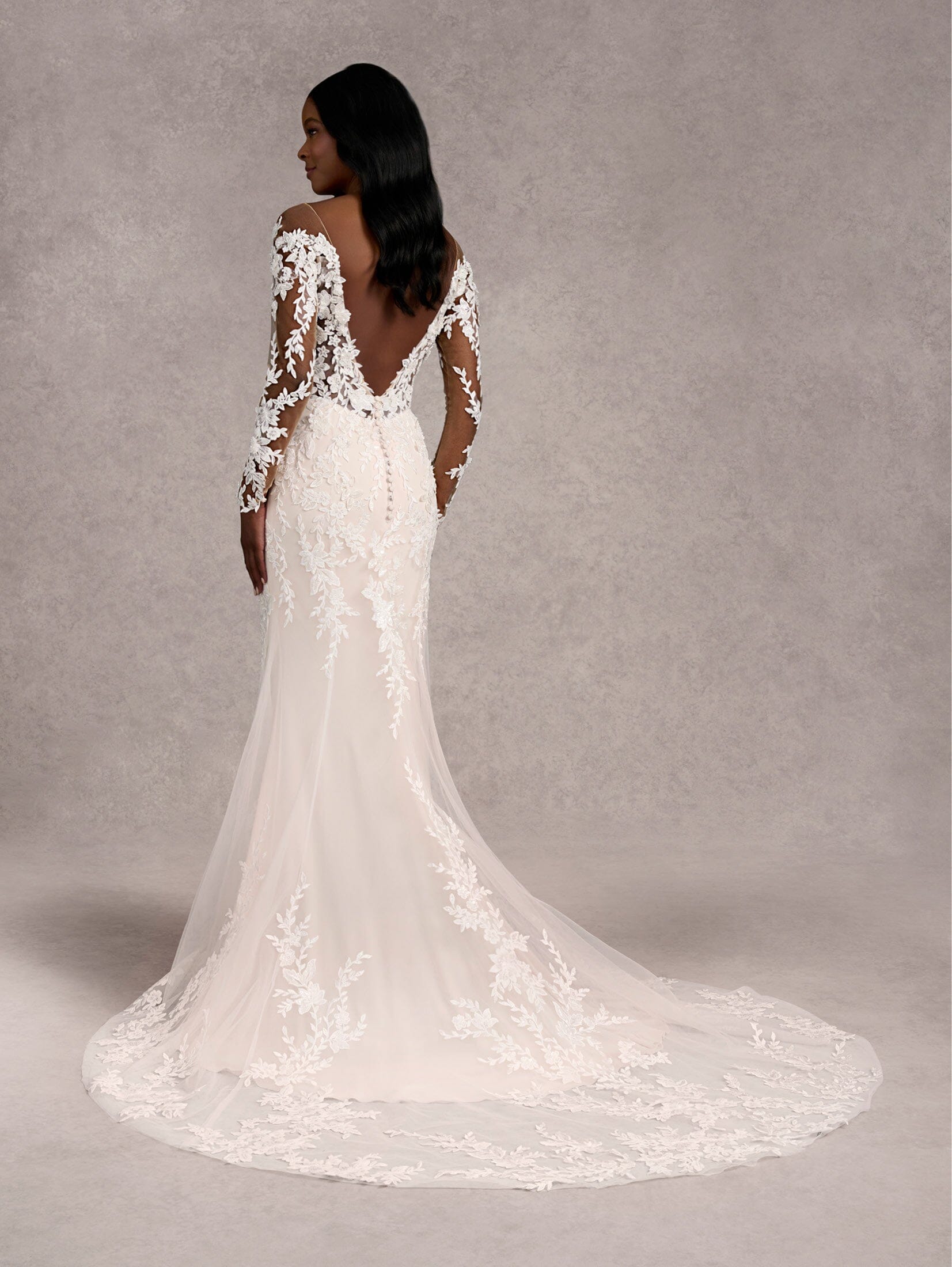 Decadent Applique Long Sleeve Column Bridal Gown x 1;