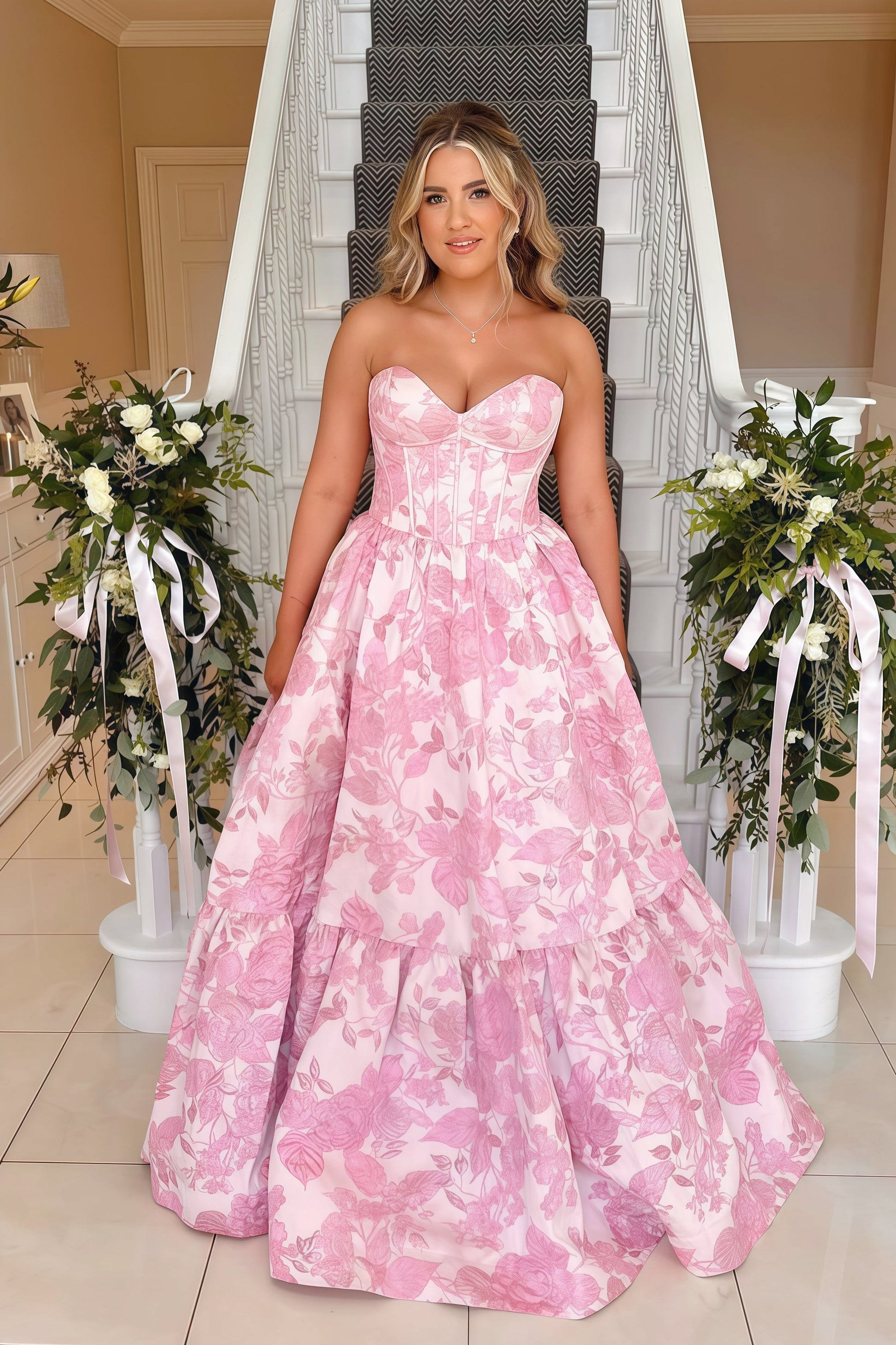 Sweetheart Pink Floral A-line Prom Gown x 1;