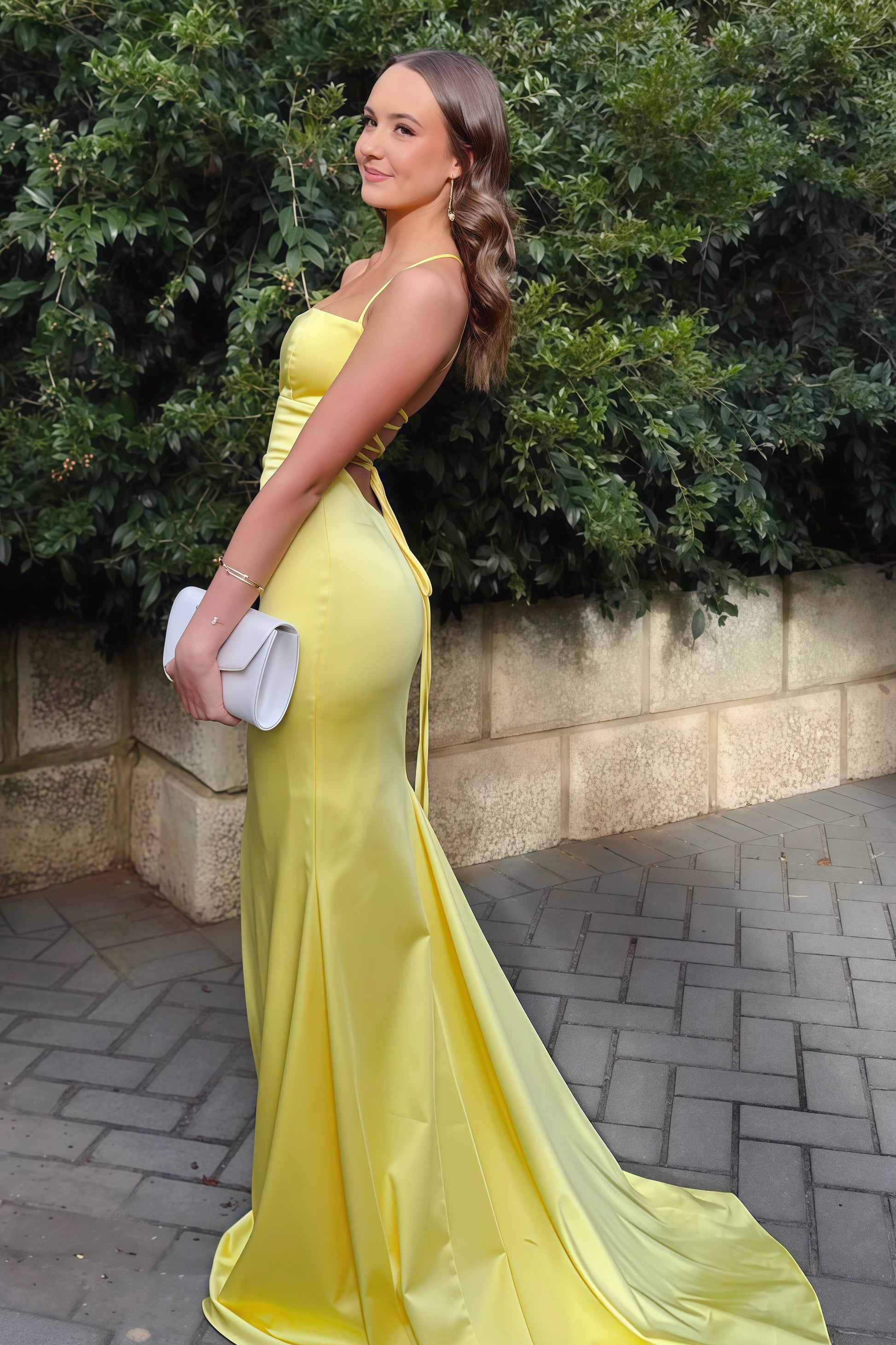 Yellow Mermaid Spaghetti Strap Long Dress x 1;