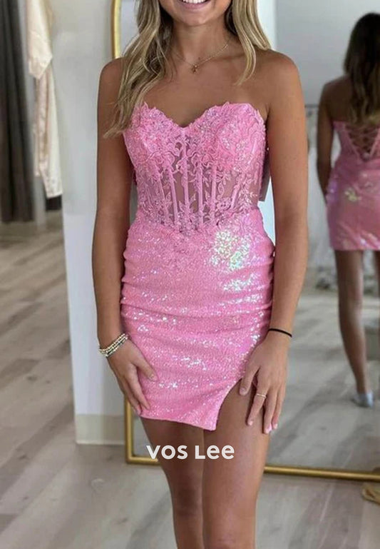 Short Sleeve Sweetheart Fully Sequined Sheath Homecoming Dresses