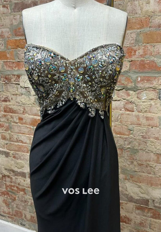 Black Sweetheart Mermaid Evening Dress Sleeveless With Crystals Lace-Up Back
