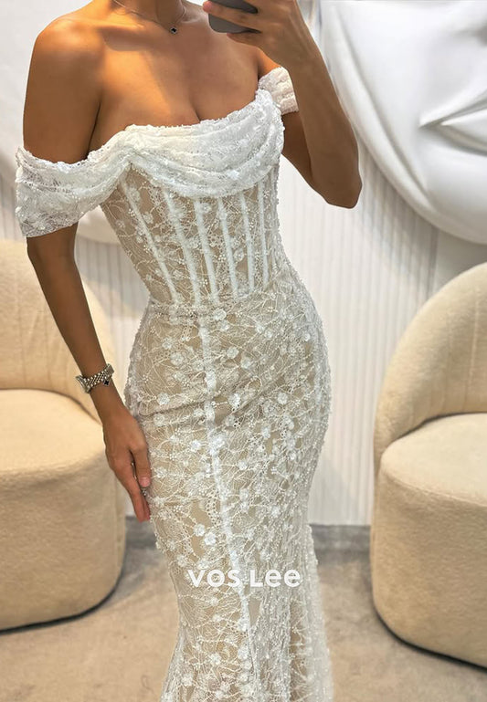 Off-the-Shoulder Lace Appliques Beading Mermaid Evening Dress