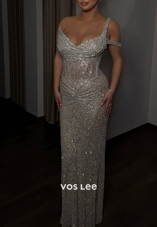 Off-the-Shoulder Evening Gowns Sequins Long With Court train