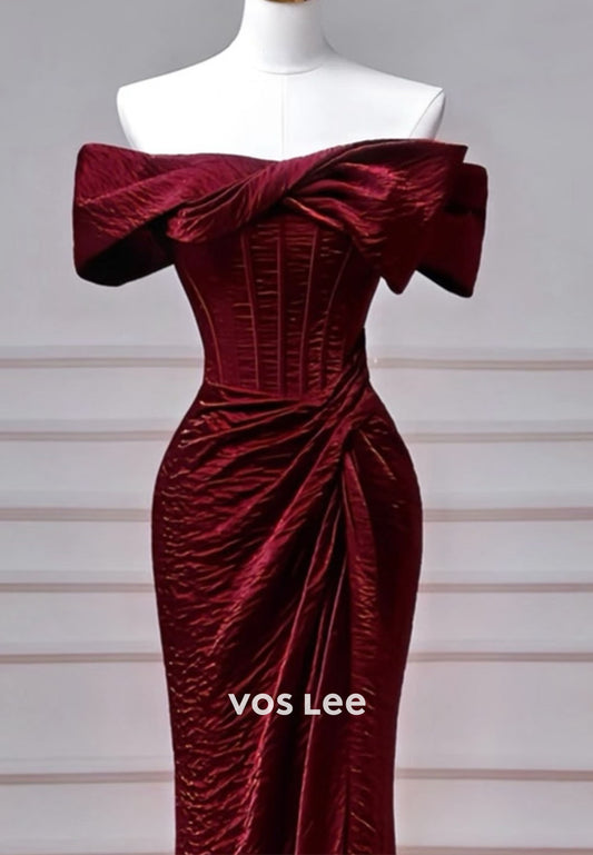 Red Off the Shoulder Elegant Mermaid Evening Dress With Pleat