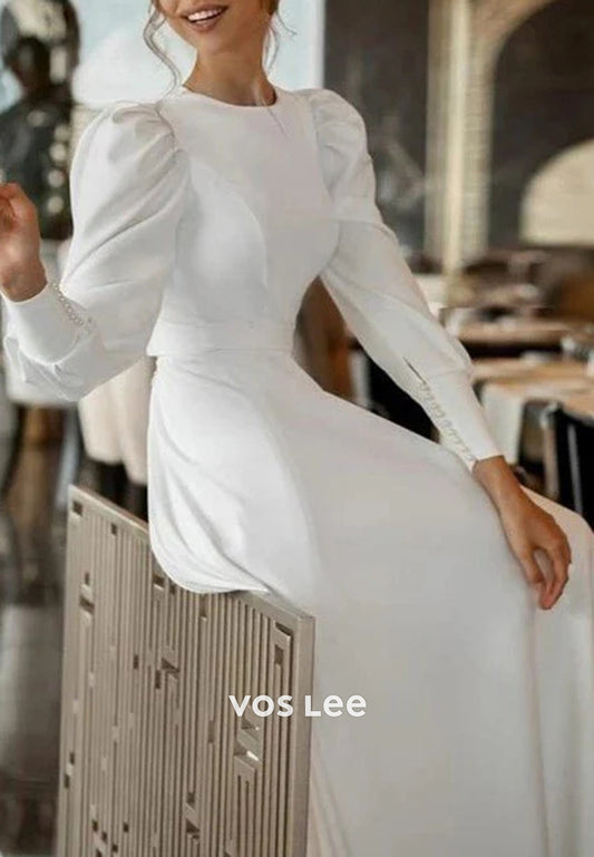 Simple & Classic A-Line Long Sleeve Scoop Pearls Wedding Dresses with Sweep Train
