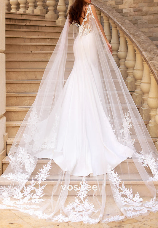 Classic & Timeless Regular Straps Appliques Lace Mermaid Wedding Dresses with Court Train