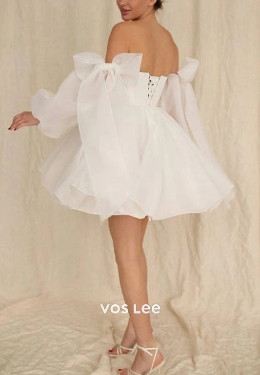 Mini & Short A-Line Long Sleeve Strapless Pleated Bowknot Beach Wedding Dresses