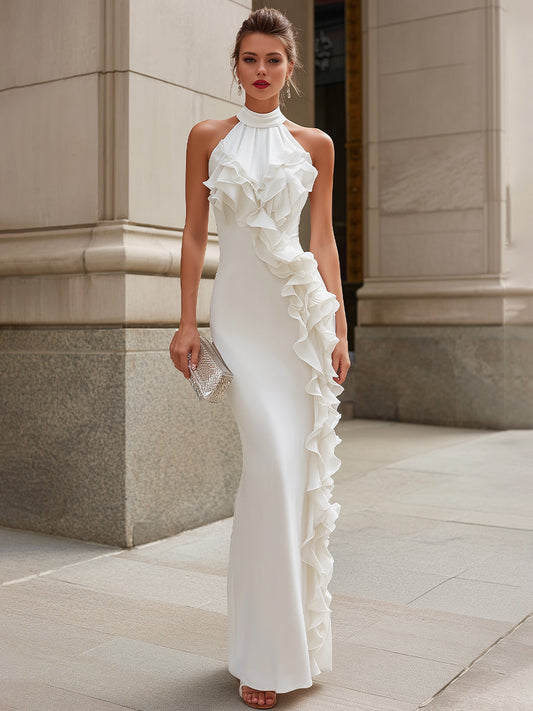 Short Sleeve Asymmetric Ruffle Midi Dress