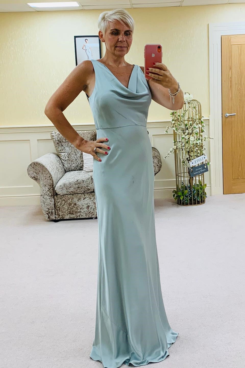 Cowl Neck Sage Green Long Bridesmaid Dress x 1;