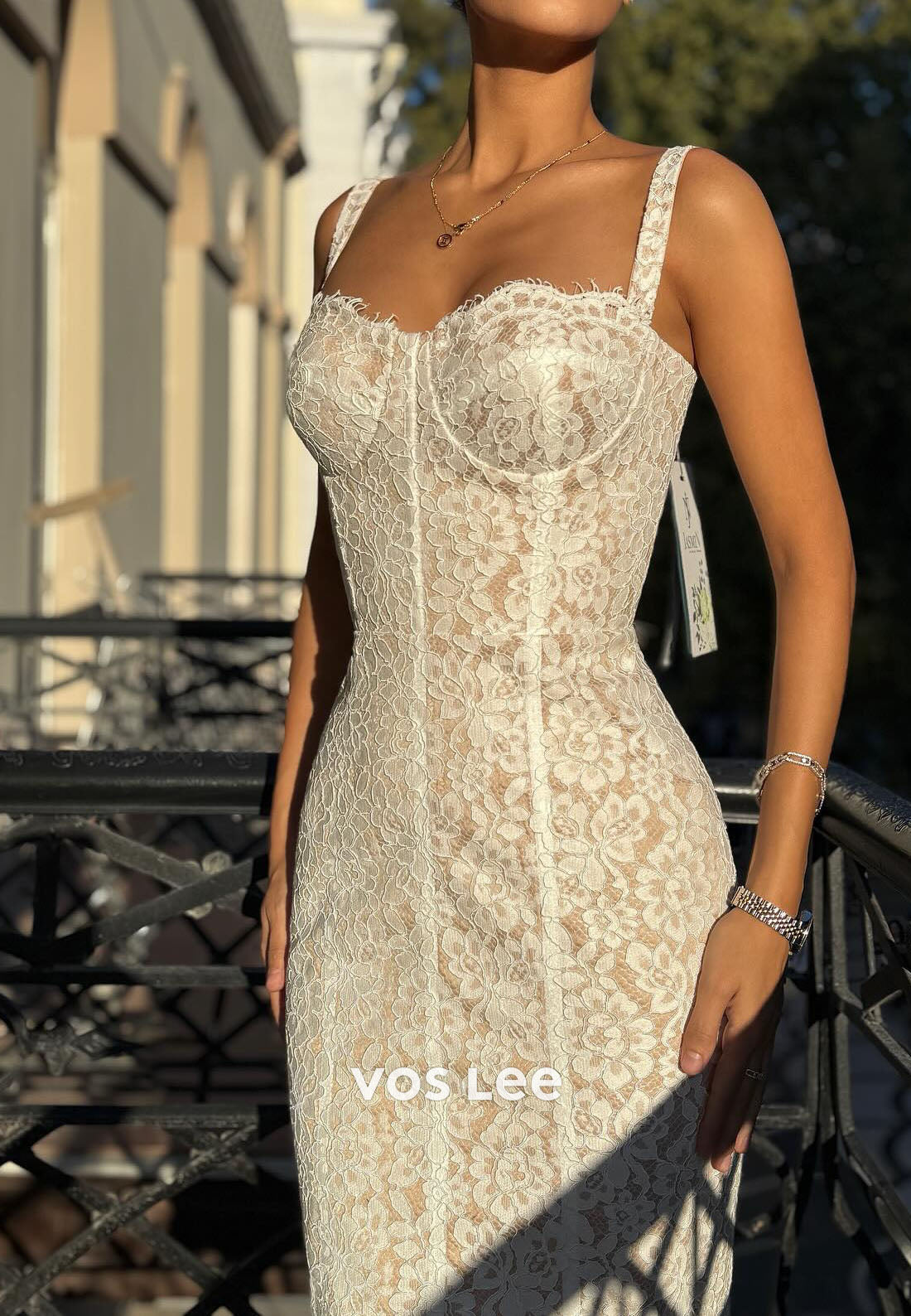 This refined mermaid evening dress showcases timeless elegance through carefully curated details. Delicate straps provide understated support while allowing the shoulders to remain gracefully exposed. Intricate lace appliqués adorn the bodice and cascade down the silhouette, adding texture and visual interest without overwhelming the design. The sleeveless cut emphasizes an elongated neckline, while the mermaid construction hugs the body before releasing into an ankle-length hem. Perfect for formal dinners, galas, and sophisticated evening events, this gown exemplifies the art of restrained luxury. A versatile foundation for personal styling and timeless elegance.