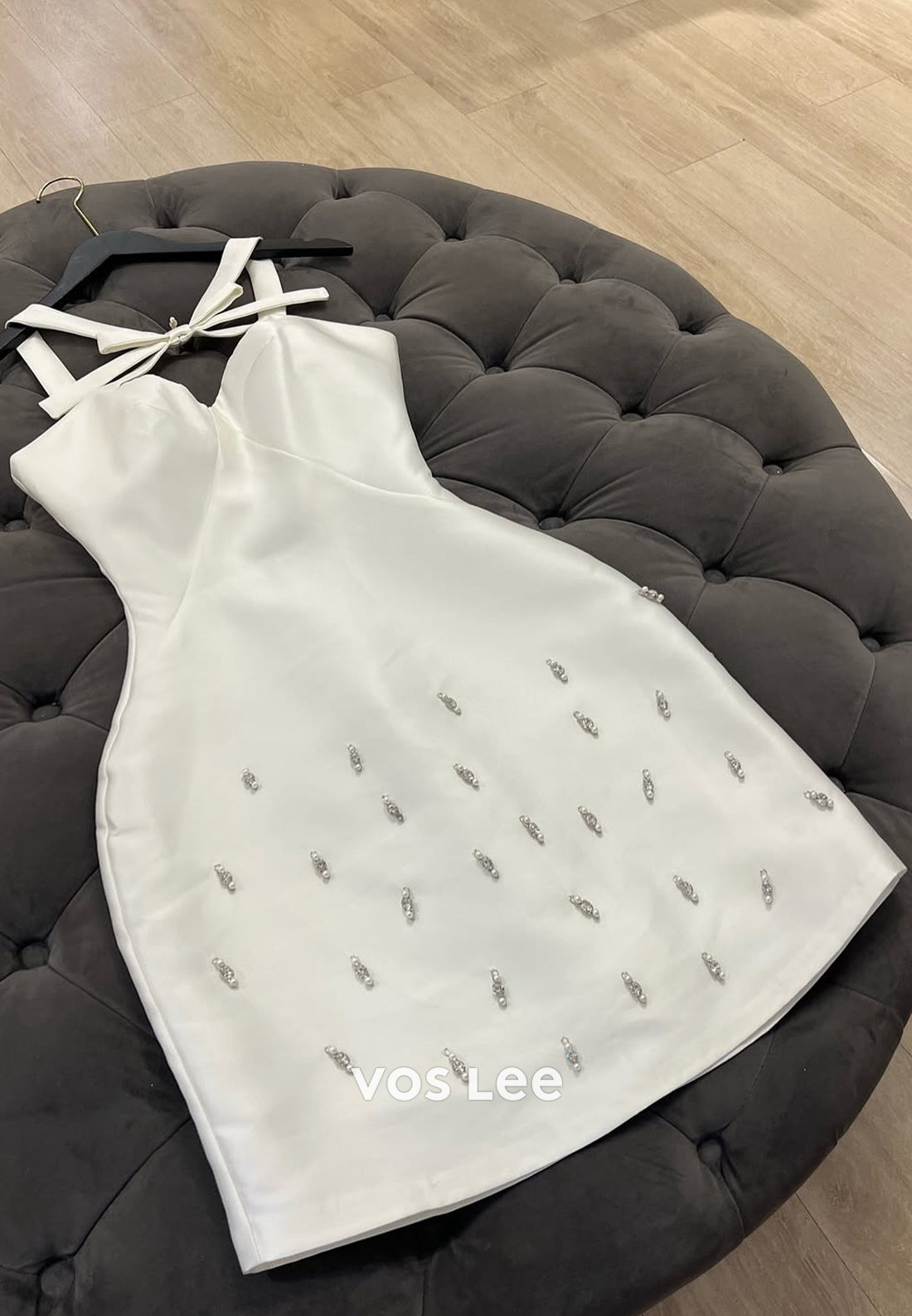 This elegant A-line homecoming dress features delicate rhinestone and pearl embellishments that add a touch of sophistication without overwhelming its simple silhouette. Designed for comfort and style, it flatters a variety of body types while providing a graceful, timeless look perfect for memorable occasions. The understated design allows the sparkling details to shine, making it an expert choice for those seeking refined glamour.