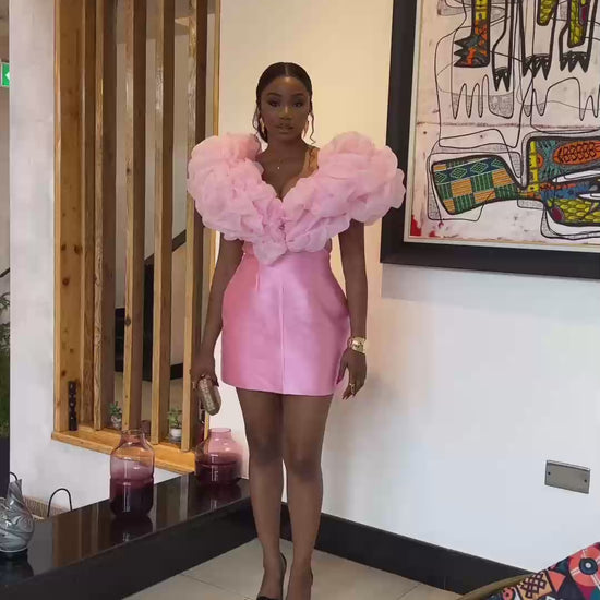 This pink mermaid homecoming dress features delicate cap sleeves and a flattering V-neckline, creating an elegant and feminine silhouette. The pleated design adds texture and sophistication, while the fitted mermaid cut accentuates curves for a striking, polished look. Ideal for formal events, this dress combines style and grace with comfortable wearability.