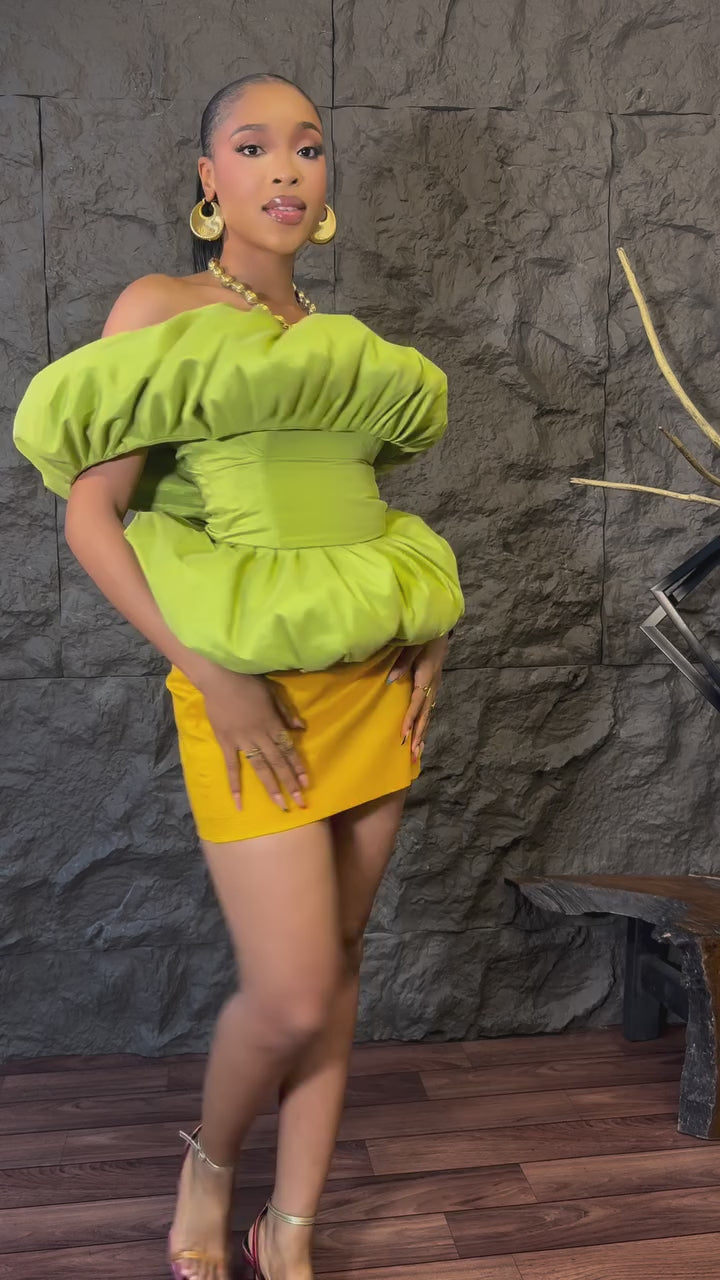 This two-piece homecoming dress features an off-the-shoulder neckline paired with a pleated mermaid silhouette that elegantly contours the body. The separate top and skirt offer a modern, versatile look while maintaining a cohesive, sophisticated style. Designed to combine comfort with striking detail, this ensemble is perfect for making a memorable statement at formal events.