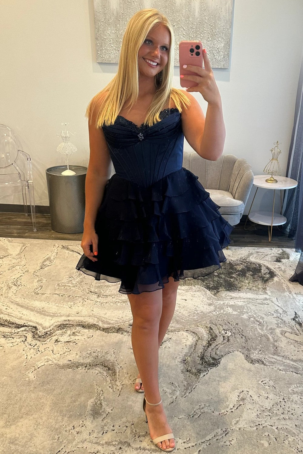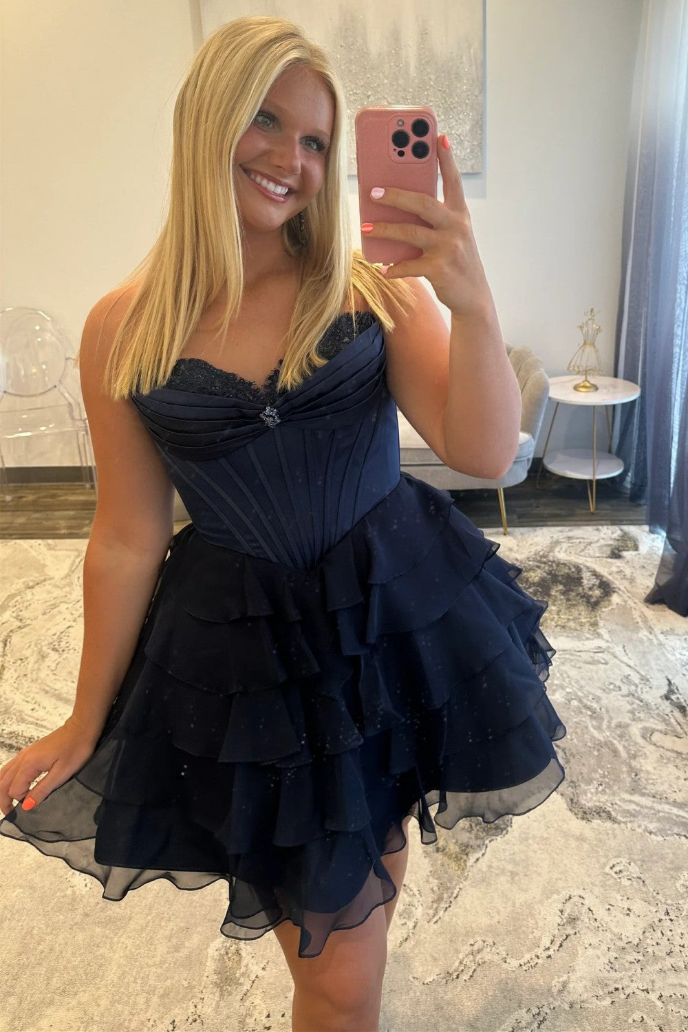 Princess A Line Strapless Lilac Corset Homecoming Dress with Appliques Ruffles