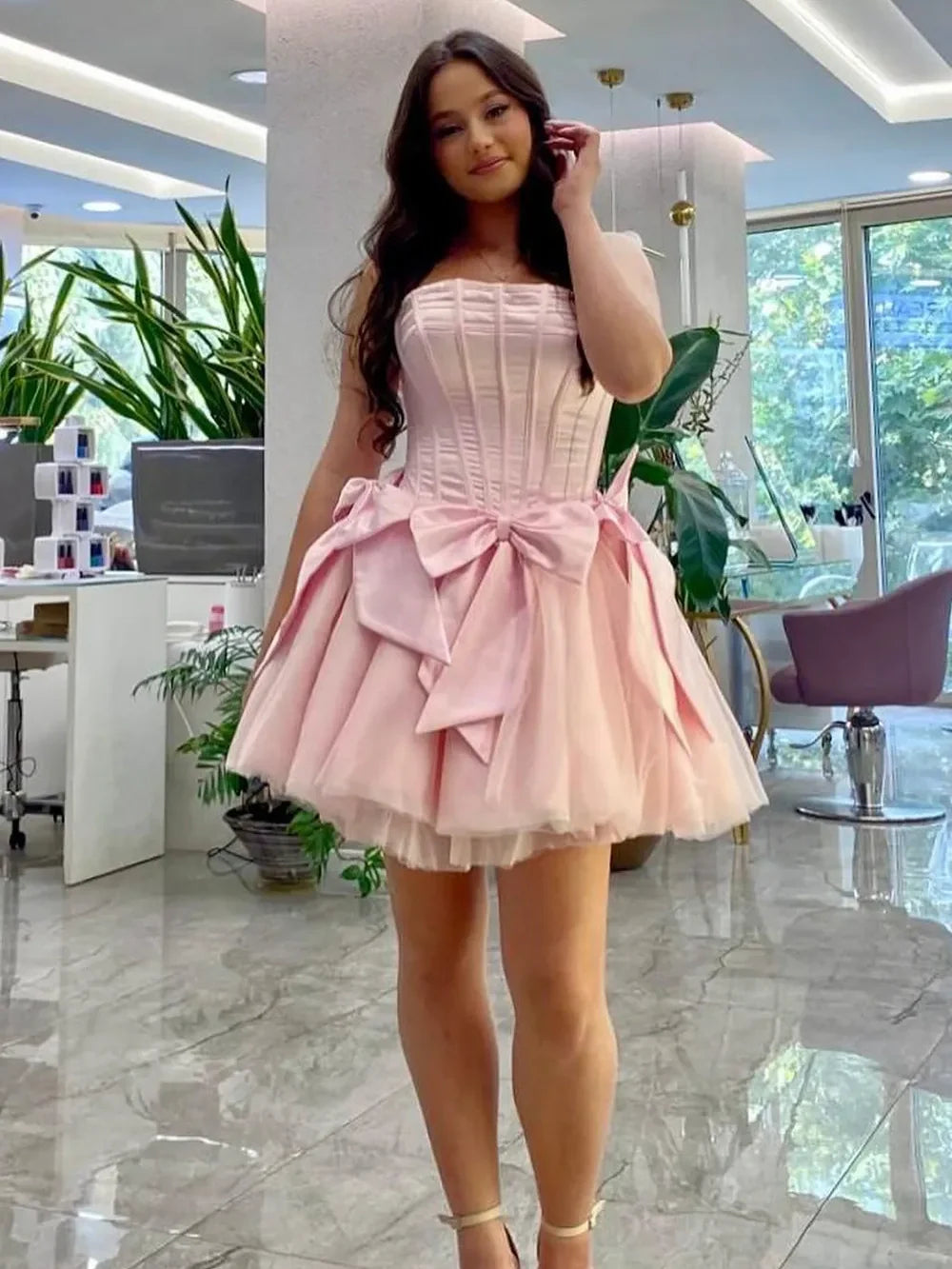 Princess A Line Strapless Pink Corset Homecoming Dress with Bowknot