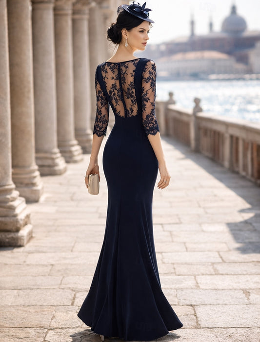 3_4 Length Sleeve Sheath Column Floor Length Wedding Guest Dress