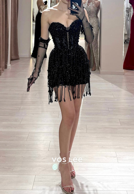 Mini & Short Strapless Sweetheart Fully Beaded Pleated Sheath Evening Dresses
