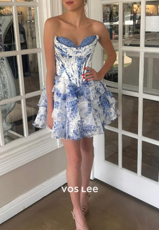 A-Line Strapless Sweetheart Appliqued Tiered Homecoming Dresses