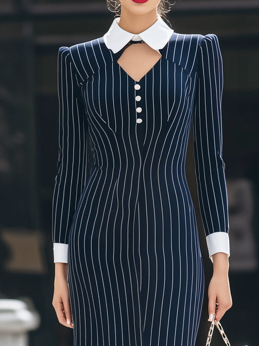 Vintage-Inspired Pinstripe Pencil Dress With White Collar