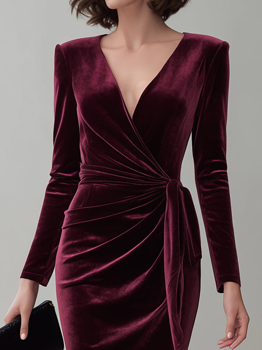 VOS LEE Burgundy Velvet Draped Midi Dress
