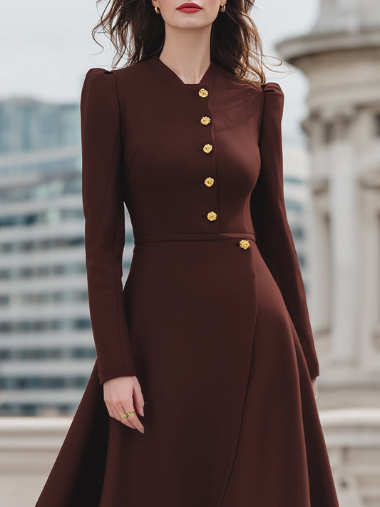 Vintage-Inspired A-Line Button-Down Midi Dress