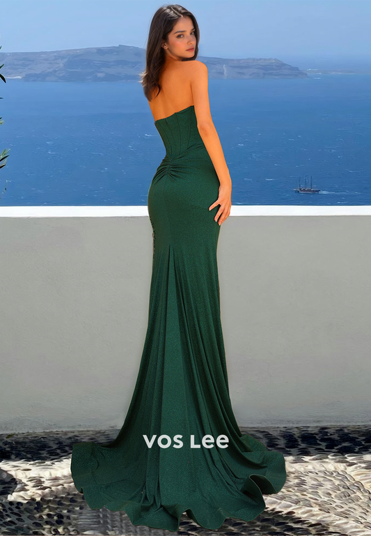 Vintage Sweetheart Sheath Back Zipper Sequins Side Split Satin Prom Party Dress
