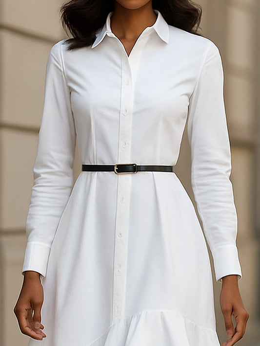 White Pleated Mini Shirt Dress Wedding Guest Dresses